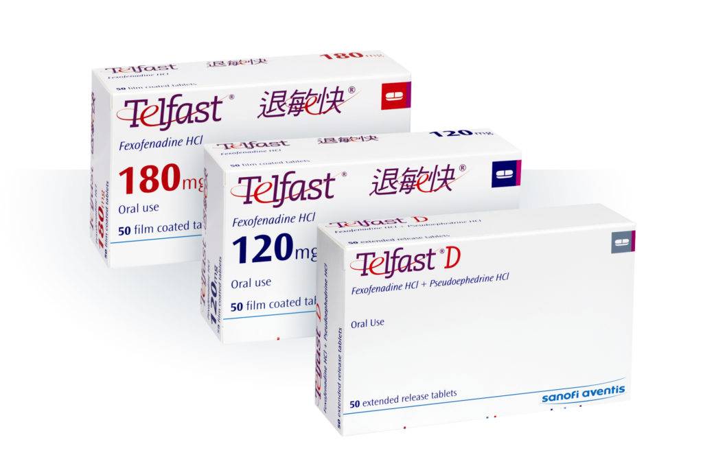 - Динокс, Аллерфекс, Фексофаст, Телфаст, Фексадин. Активное вещество – фексофенадин.