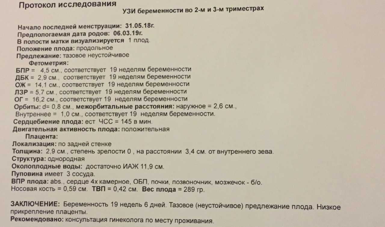 - размер будущего ребенка (должен соответствовать сроку);