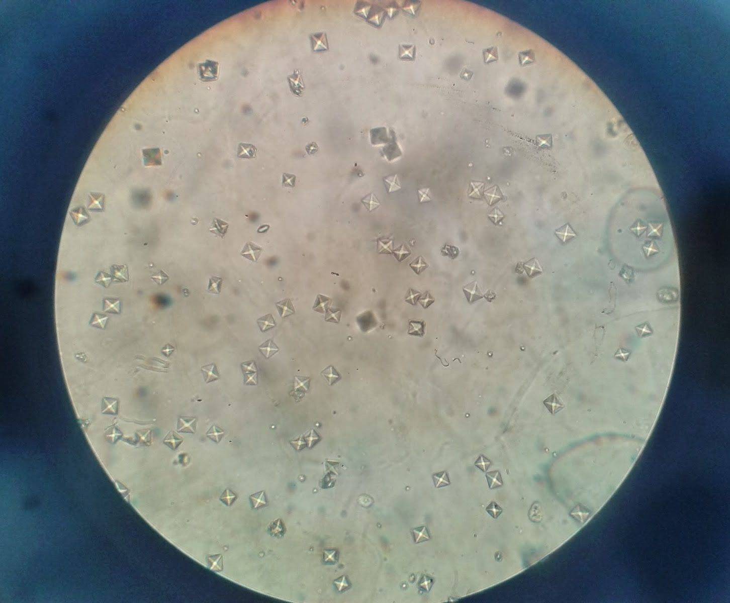 Фосфат кальция в моче под микроскопом