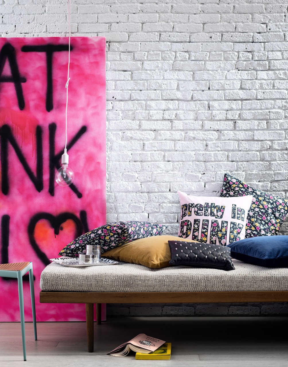 Сделать комнату более «живой» можно с помощью фотографий на стенах, современных картин и множества ламп.