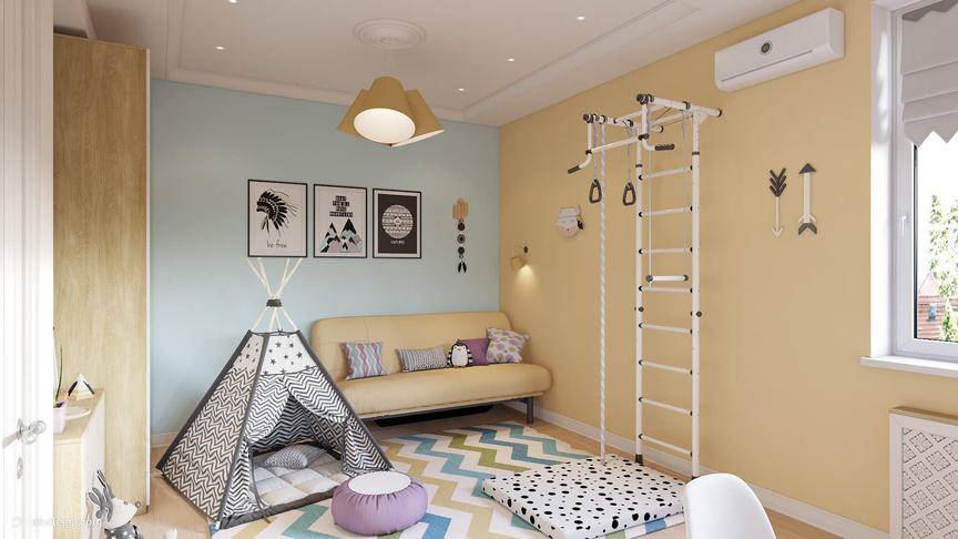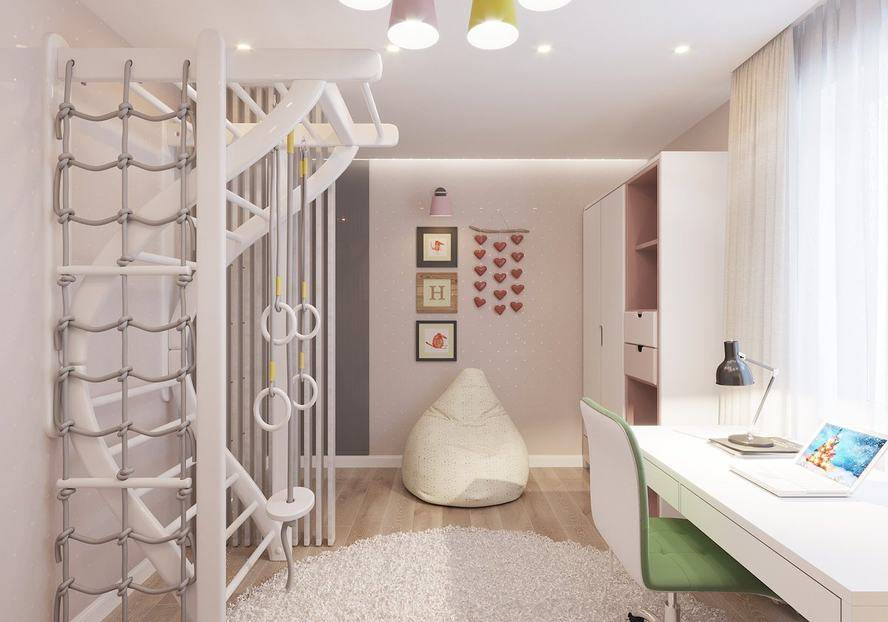 Например, некоторые родители данную зону оборудуют спортивным уголком, а другие превращают в музыкальный уголок или место для чтения с удобными креслами и торшером