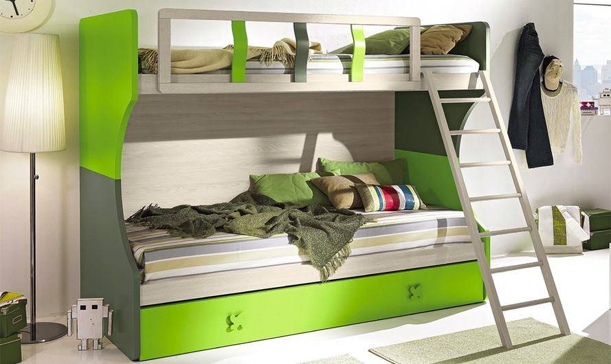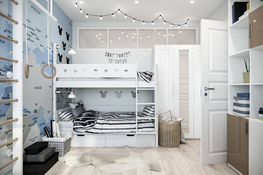 Если в детской проживает два мальчика, стоит купить двух ярусную кровать.