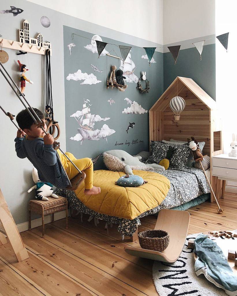 Комната для юного следопыта будет целым миром, который он будет постигать! Здесь он будет бегать, играть, развиваться, принимать гостей, узнавать новое и делать открытия! Необязательно строгое деление на зоны, даже стол для занятий может быть обставлен игрушками и веселыми мелочами. Яркие цвета будут поднимать настроение и стимулировать ребенка к активности, но лучше использовать в интерьере не более 3-х разных оттенков, чтобы не переборщить.