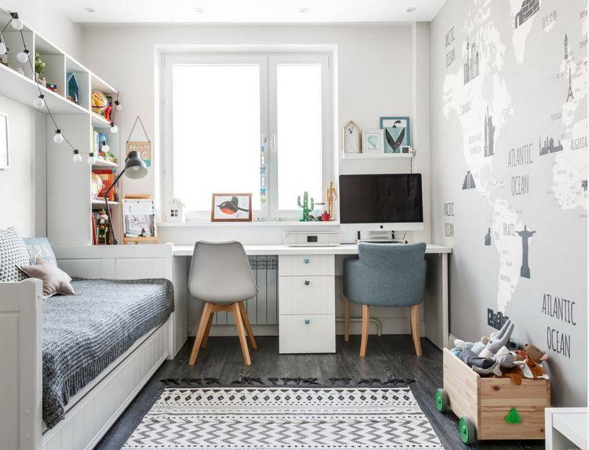 Эта комната будет служить ему одновременно и спальней, и кабинетом, и гостиной, и игровым залом одновременно. Заранее начертите план и разумно используйте каждый квадратный метр, чтобы пространство не было перегруженным. Для девочки предусмотрите просторную гардеробную с большим зеркалом, для мальчика – компьютерную зону для всей его многочисленной техники.