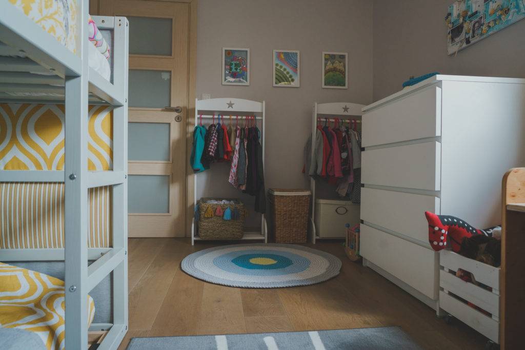 Комнату для ребенка дошкольного возраста не стоит перегружать мебелью. Здесь вполне будет достаточно кроватки, маленького столика для творческих занятий, небольшого шкафчика и стеллажа под игрушки. Пусть остальное пространство останется для развлечений. Покупай безопасную и устойчивую мебель. Высокие предметы дополнительно зафиксируй к стене, а также избегай острых углов.