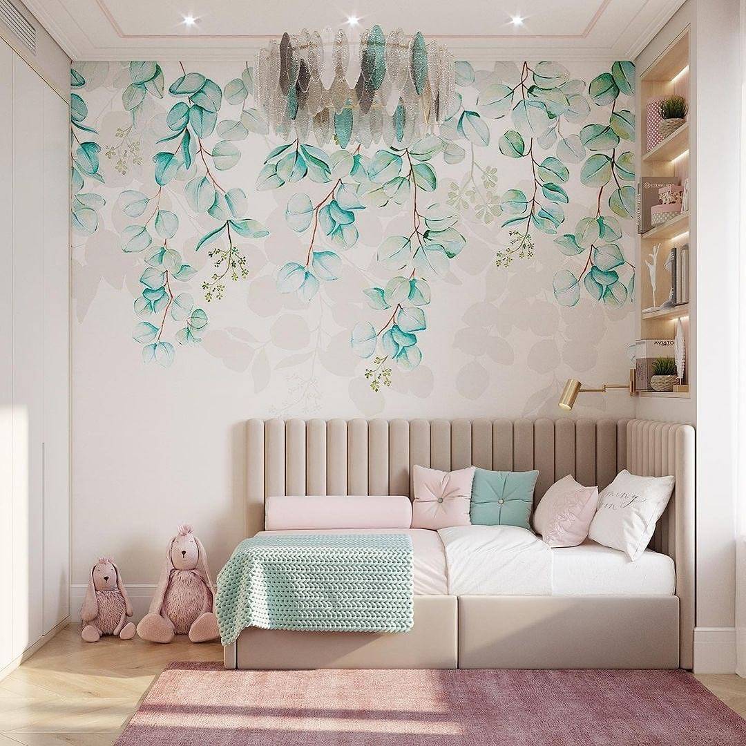 В спальной комнате для девочки будет гармонично смотреться пастельные розовые, персиковые, белые, мятные и другие светлые оттенки, визуально расширяющие пространство и наделяющие обстановку воздушностью.