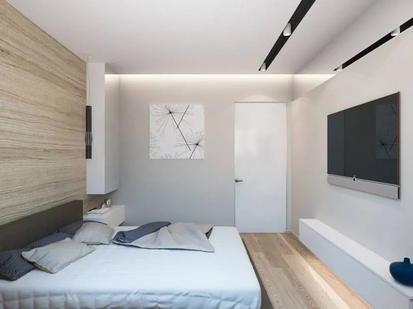 Комната площадью 12 квадратных метров может вместить только необходимые предметы обстановки. К ним относится кровать, тумбочки, шкаф, комод. Иногда в спальне вешают телевизор. Вот несколько рекомендаций:
