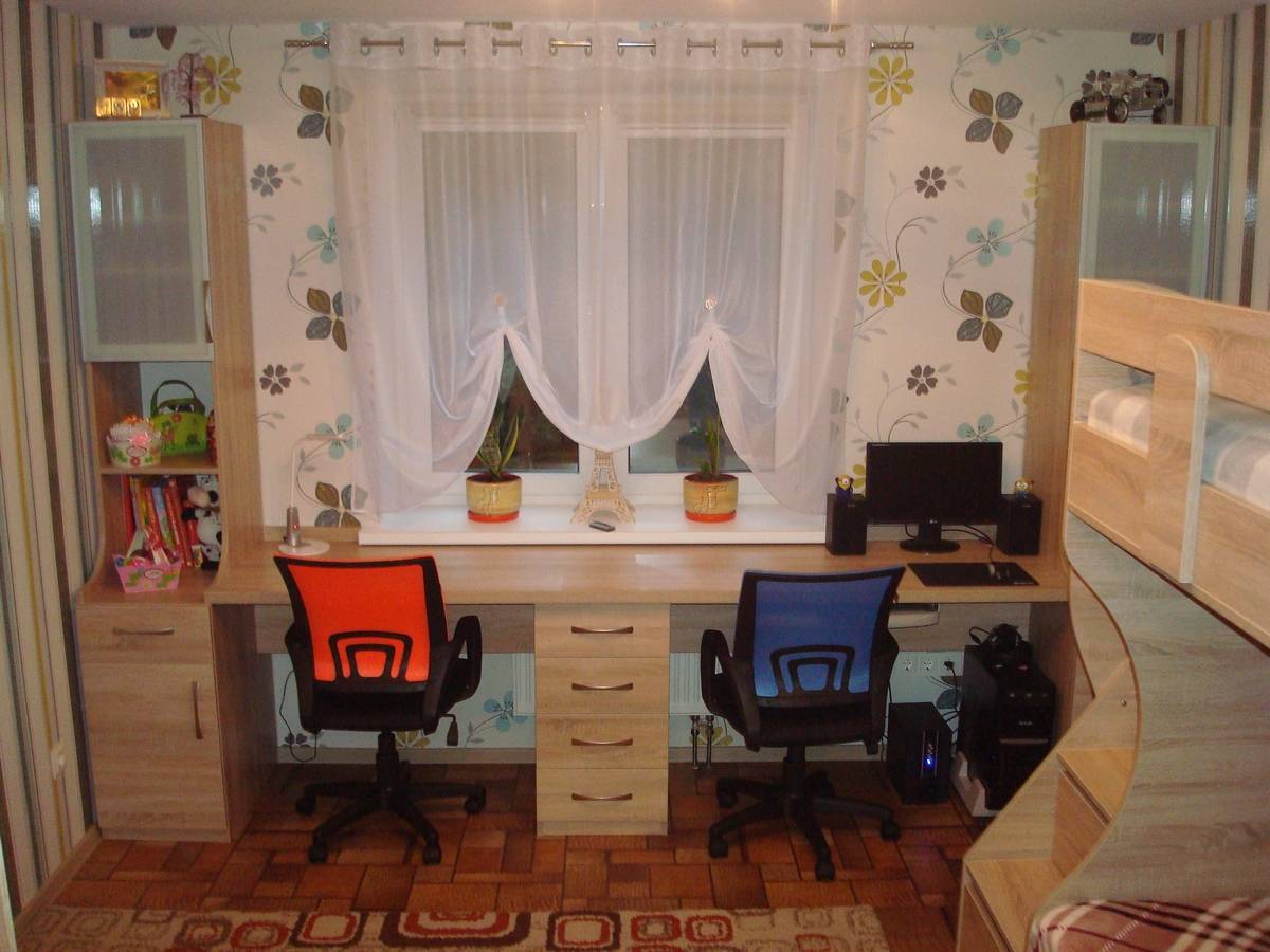 - Работа / учеба . Даже если ребенок дошкольник, место для лепки и рисования лишним не будет. А потом оно переоборудуется в учебный стол: кстати, широкая столешница может быть продолжением подоконника. Для 10-метровых комнат хороши модульные системы, в которых можно разместить все необходимое: лампу, учебники и тетради, письменные принадлежности и так далее.