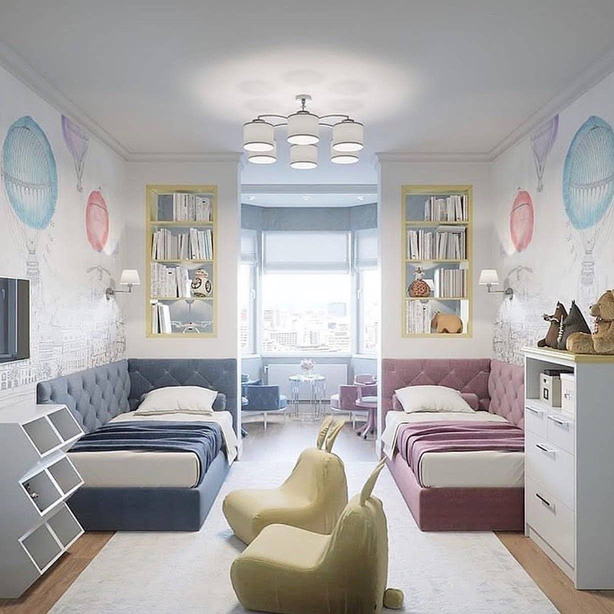 Поэтому важно продумать дизайн и обстановку комнаты с учетом интересов детей. Варианты планировки здесь могут быть такими: