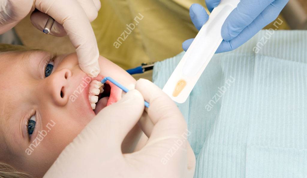 - Доктор предварительно оценивает состояние эмали, степень запущенности кариеса, если таковой уже имеется. Также он уточняет, какой пастой пользуется ребенок, какое в ней содержание фтора.