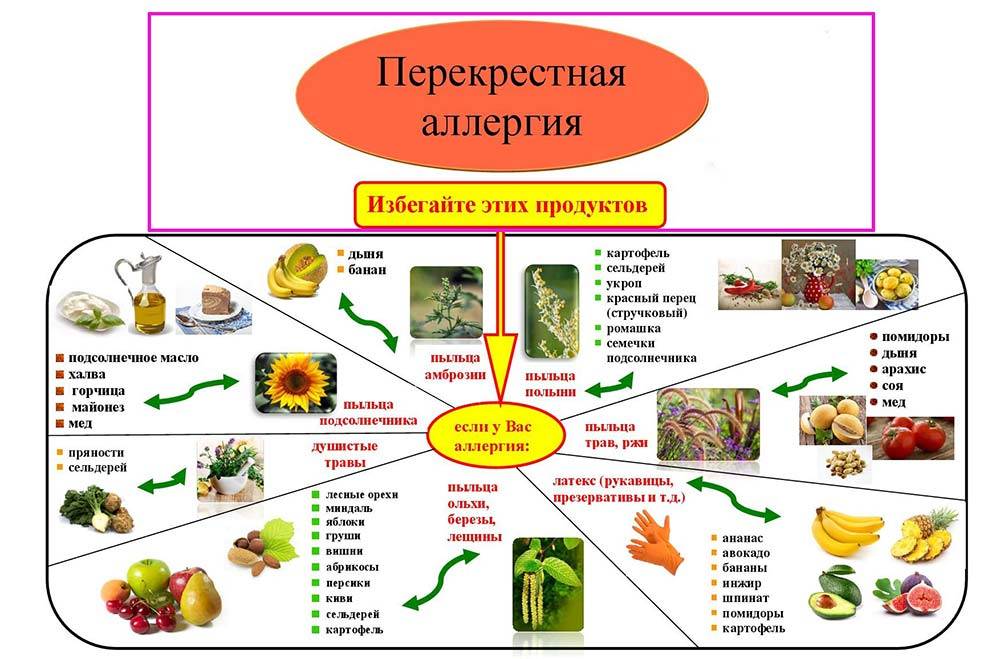Важно знать, что существует так называемая перекрестная аллергия. Ее суть состоит в том, что при наличии реакции на конкретный вид аллергена возможно возникновение симптомов заболевания и на сходную по строению белка пищу