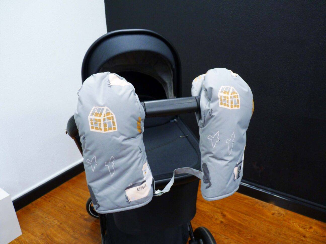 - Муфта. Её вешают на ручку коляски, используют зимой для дополнительной защиты рук от холода.