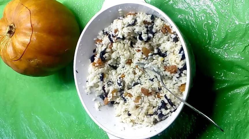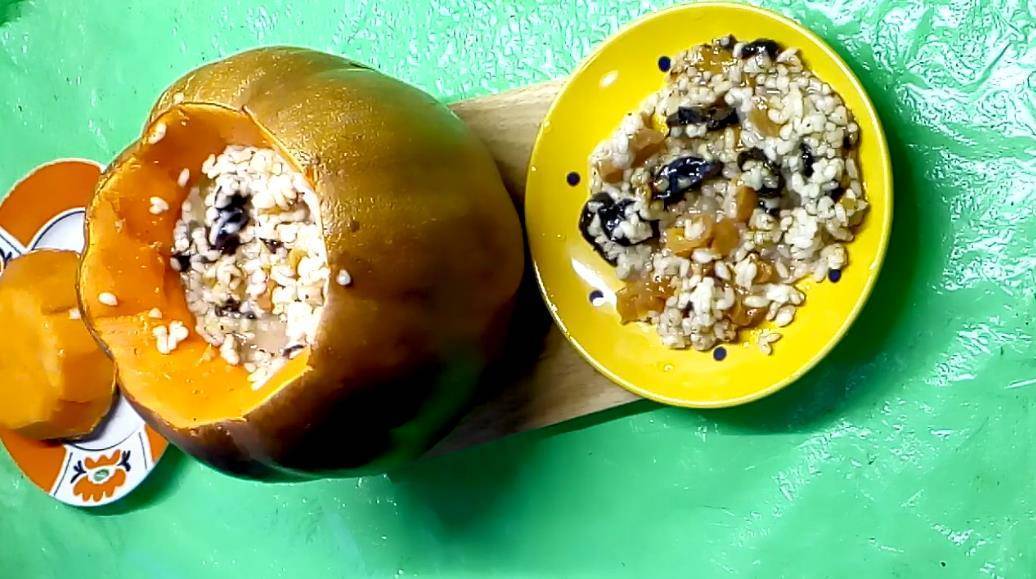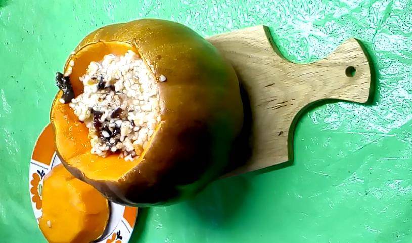 Тыкву порезать и положить в посуду с толстыми стенками и дном. Подходящим вариантом станет казан. Залить овощ кипятком и варить под крышкой до мягкости. Хлопья перемолоть и всыпать к тыкве, засыпать сахар и влить молоко, при необходимости долить воды. Варить до готовности 10-15 минут. В результате получается диетическое и очень сытное блюдо, которое можно давать ребенку старше 1-1,5 лет.
