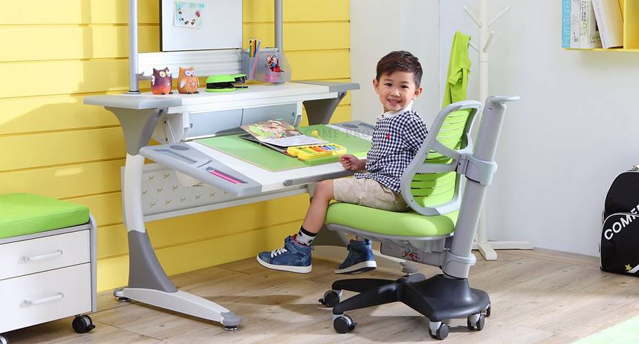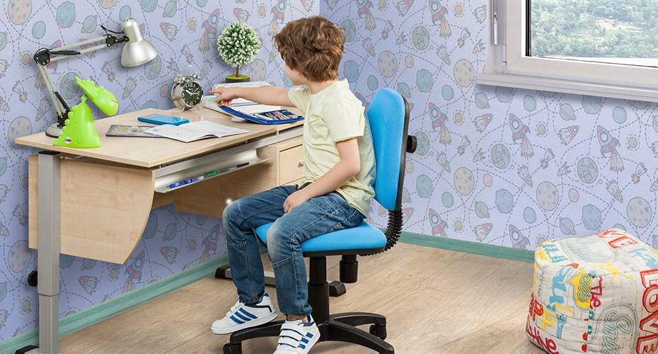 Очень важный момент: важно подбирать стол с учётом дальнейшего роста ребёнка. Но если приобрести стул, который можно регулировать под рост школьника, то вопрос выбора оптимальной высоты стола решится сам собой