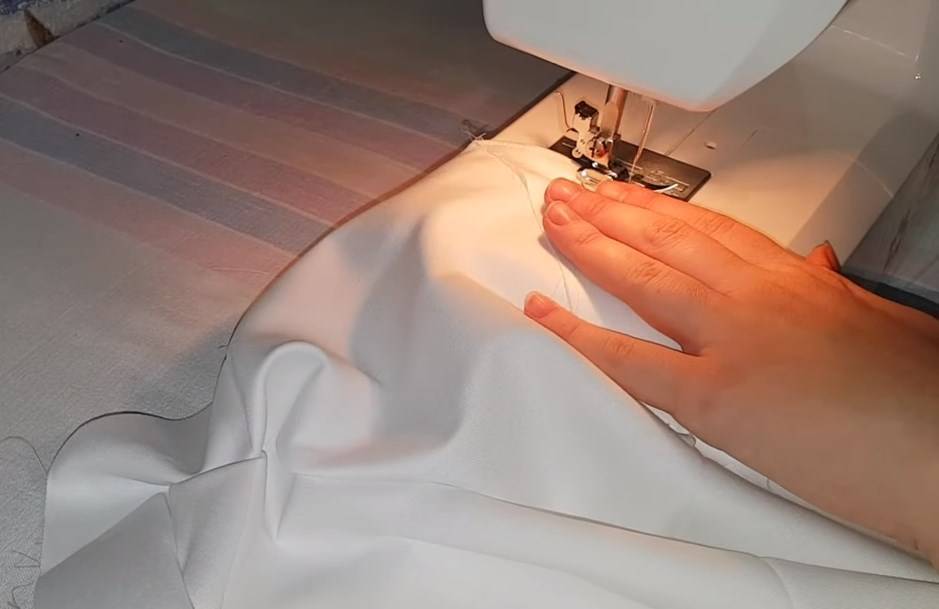 - Аккуратно и не спеша прошивайте проглаженные линии на швейной машине. От края нужно отступать соврем немного, около двух миллиметров.