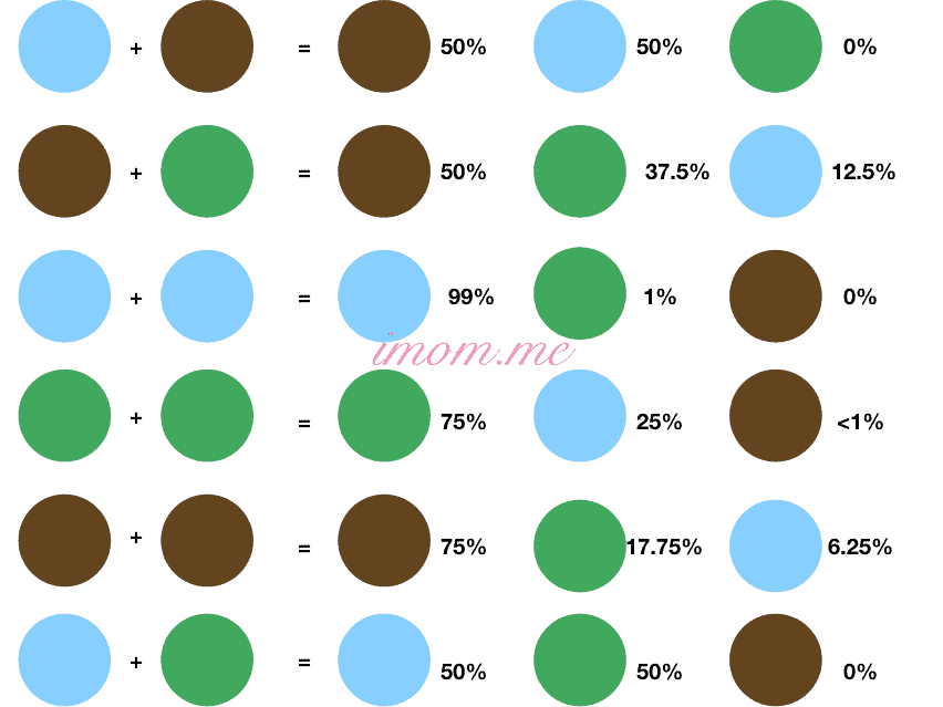 Партнёры могут быть оба с карими генами, а также оба с голубыми или же, например один партнер с голубыми, а другой с карими.