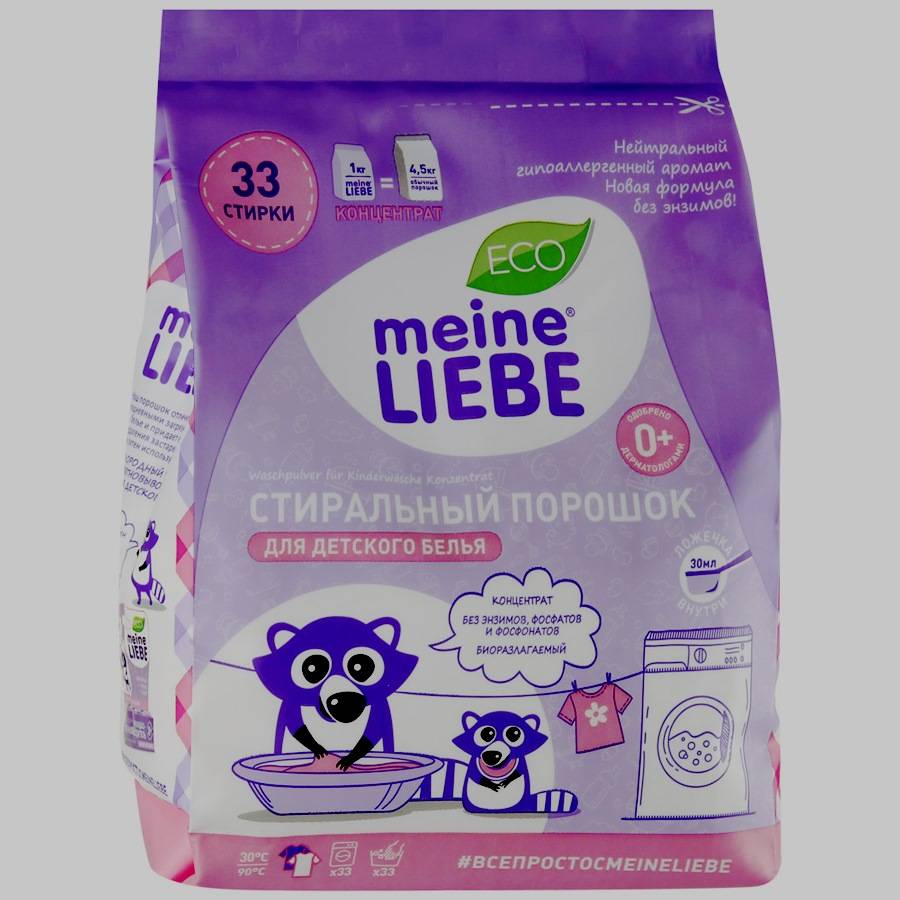 - Meine liebe. Страна: Дания. Цена: около 350 руб. Особенности: основан на натуральном мыле, подходит для стирки вещей младенцев, эффективен при 40-90 градусах, не содержит фосфатов, хлора и прочих вредных компонентов. Один из самых безопасных гелей для стирки.