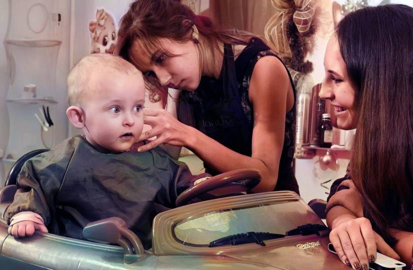 Чтобы первая стрижка ребенка в парикмахерской прошла удачно, можно предварительно взять кроху с собой, чтобы он мог осмотреться, убедиться, что место не опасное, понаблюдать за тем, как стригут маму или папу. Ребенок с удовольствием последует примеру родителей.