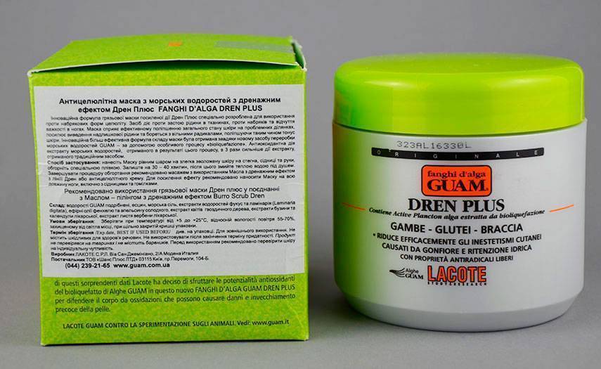 Перед нанесением на тело крема Elancyl можно воспользоваться и скрабом GUAM DREN с дренажным эффектом. В его составе содержатся следующие питательные вещества: