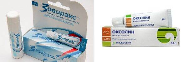 Фото: Противовирусные препараты — Зовиракс и Оксолиновая мазь