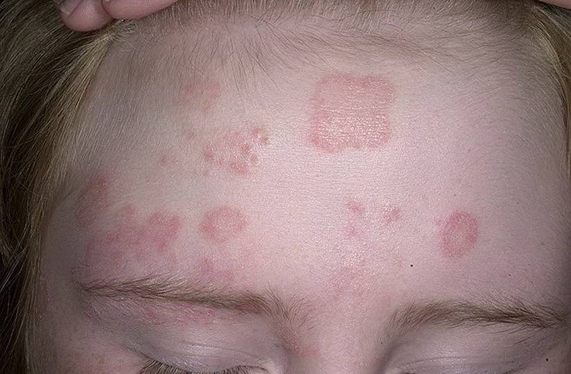 Высыпания имеют яркую окраску и внушительный размер (около 5 см). Со временем пятен становится больше, локализуются они по всему телу. Провоцирует заболевание в большинстве случаев склонность к аллергии.
