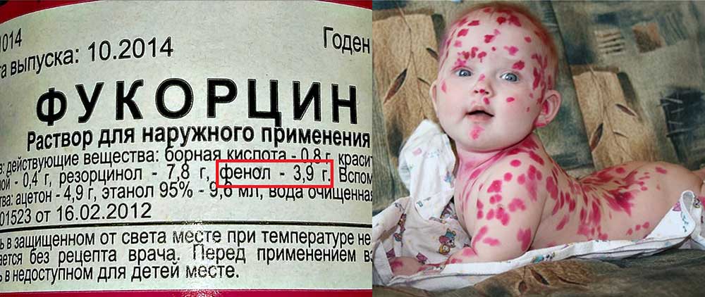 Метиленовый синий. Показан для обеззараживания при воспалительных процессах. Противопоказан детям до года. В 2020 году широко используется родителями.