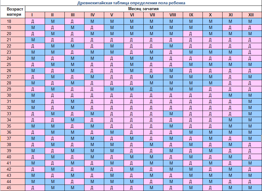 Считается, что китайская таблица по определению пола ребенка существует несколько тысяч лет. Зная возраст матери и месяц, в котором произошло зачатие, можно с помощью таблицы определить пол малыша. Кроме того, метод позволяет запланировать рождение ребенка нужного пола.