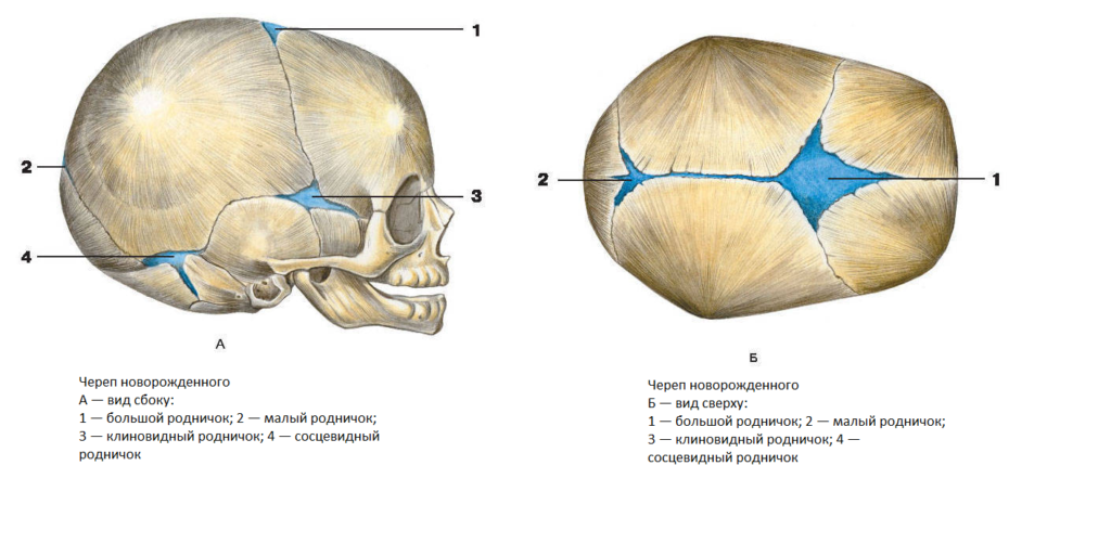 После появления на свет у малыша насчитывается 6 родничков, но только лишь на 2 мы обращаем внимание, так как 4 зарастают ещё в первую неделю жизни ребёнка