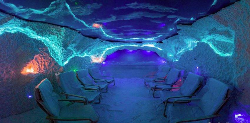 Это специальное помещение, в котором воссоздаются естественные условия пребывания, как в соляной пещеры. Для этого стены комнаты облицовываются солевым материалом, в жаркую погоду существует специальная система охлаждения воздуха, в холодную ̶ подогрева. Помимо этого, контролируется влажность, а также наличие в воздухе ионов натрия хлорида с помощью галогенераторов.