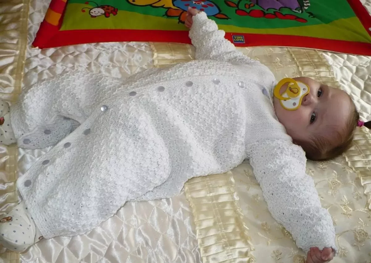 - Вяжите модели с запасом, поскольку дети первого года жизни растут очень быстро и случается так, что работа только закончена, а комбезик уже маленький.