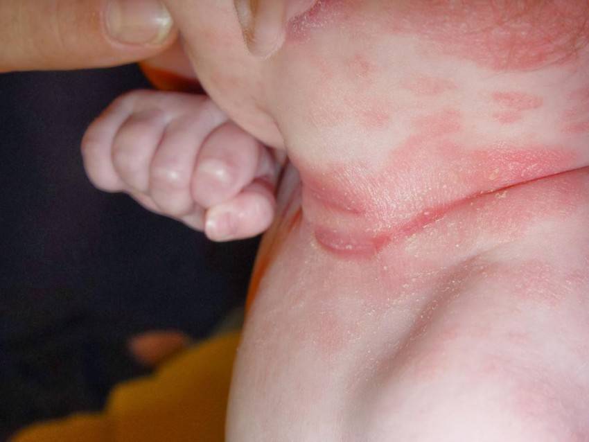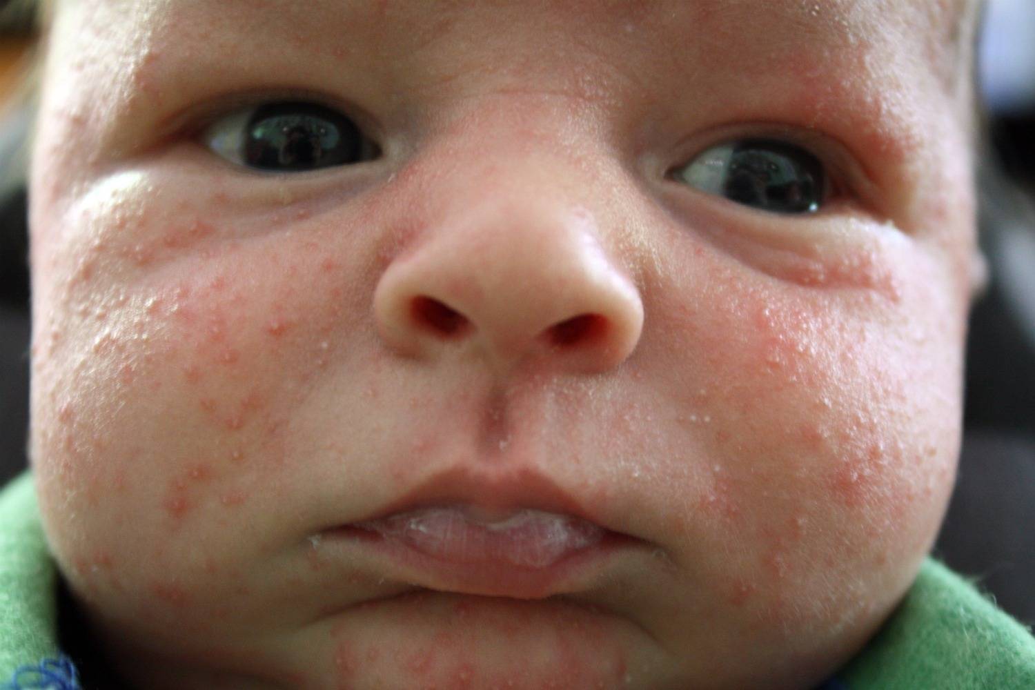 Проявляйте повышенное внимание к тельцу малютки. Если вы заметили, что высыпания начали гноиться, появилось шелушение или трещинки на кожном покрове, малыш проявляет беспокойство, сыпь зудит или у него появилась температура, не оттягивайте визит к врачу