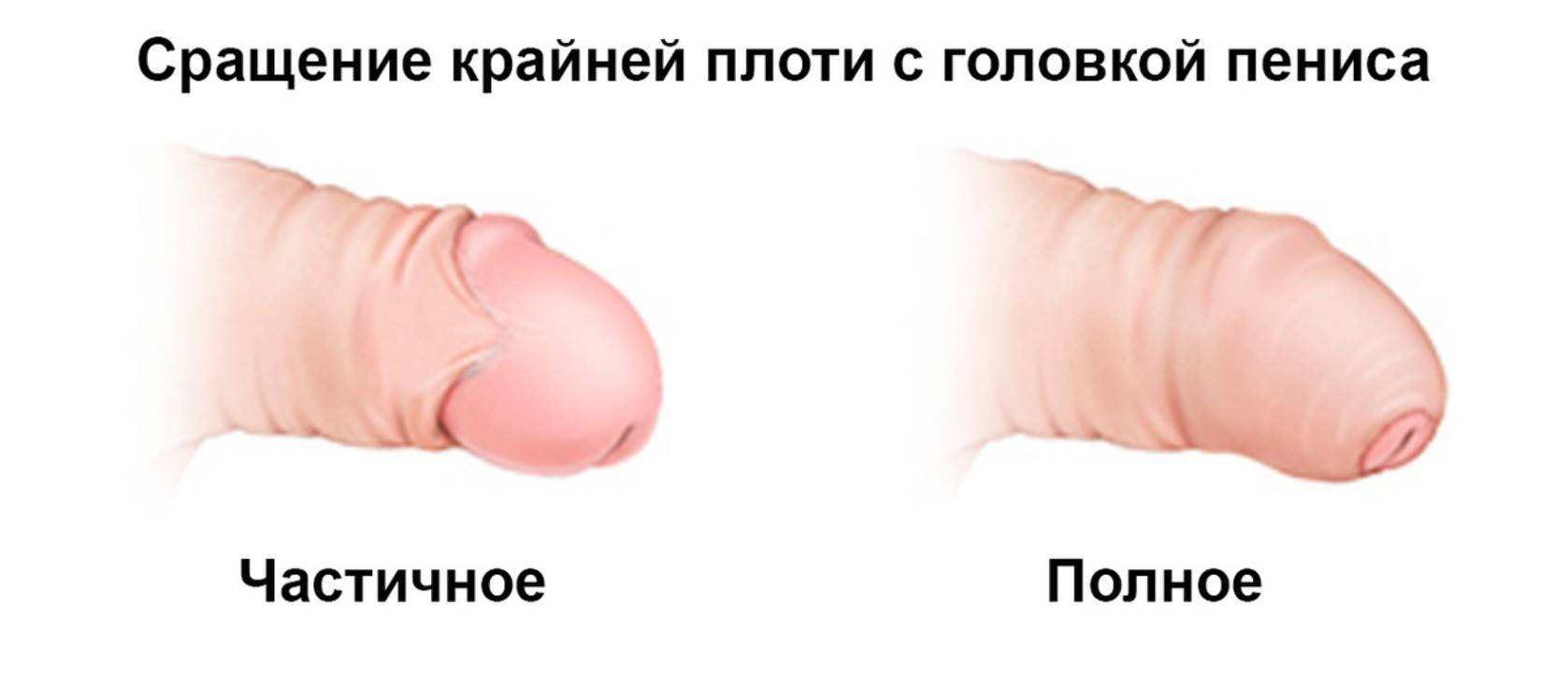 - склеивание головки полового члена и внутреннего листка крайней плоти у детей.