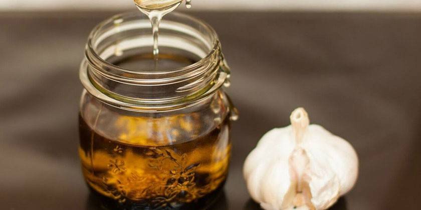 - чесночное масло – 4 зубчика измельчают, добавляют стакан растительного масла, нагревают 5 минут, охлаждают, пьют трижды в сутки по чайной ложке;