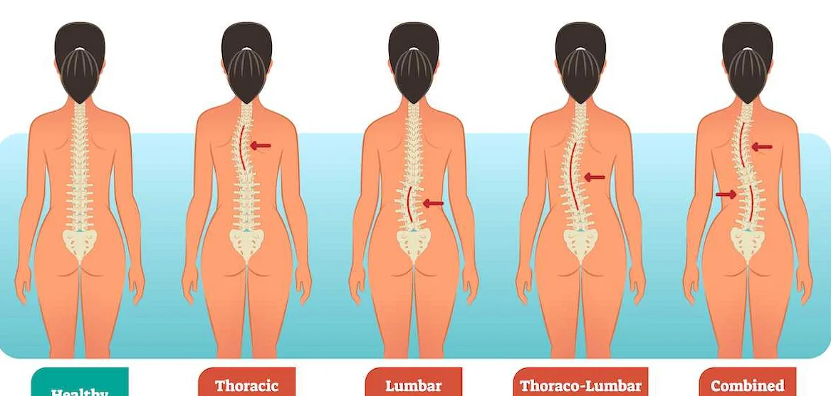 Искривление позвоночника может быть дугой либо S-образным. Первый вариант встречается чаще, причём распространена левосторонняя дуга. Во втором случае образуются две дуги искривления, одна из них выражена чётко, а вторая является уравновешивающей.