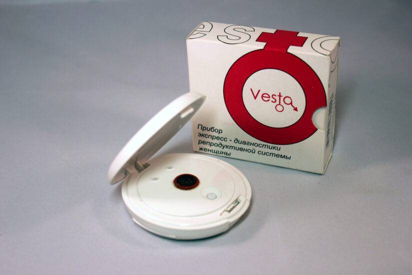 Естественный вид тестирования по слюне – это многоразовые тесты на овуляцию, которые выполнены в виде пудреницы или женской помады. Они являются миниатюрным микроскопом. Он может выявить такой признак выхода яйцеклетки, как образование листа папоротника. Примеры приборов – «Веста», «Ева-тест», ОВУ, «Арбор», Ovulux.