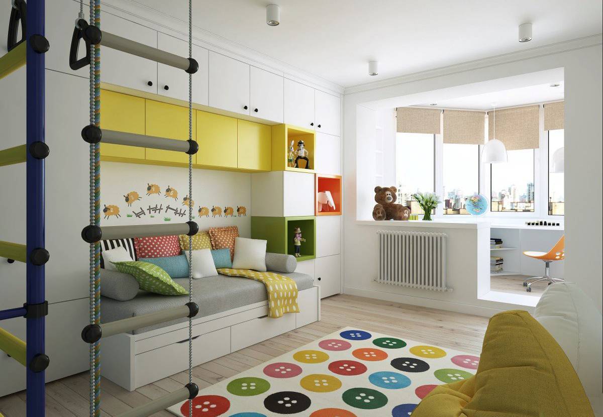 Если она совмещена с балконом/лоджией, ребенку повезло. У него есть больше пространства, свободы и возможностей. Планируя дизайн детской комнаты, учитывайте это. Полное снесение стены между дополнительным помещением и основной комнатой сложный процесс, требующий множества разрешений и согласований в специальных органах. В большинстве случаев он невозможен, так как это – несущая стена.