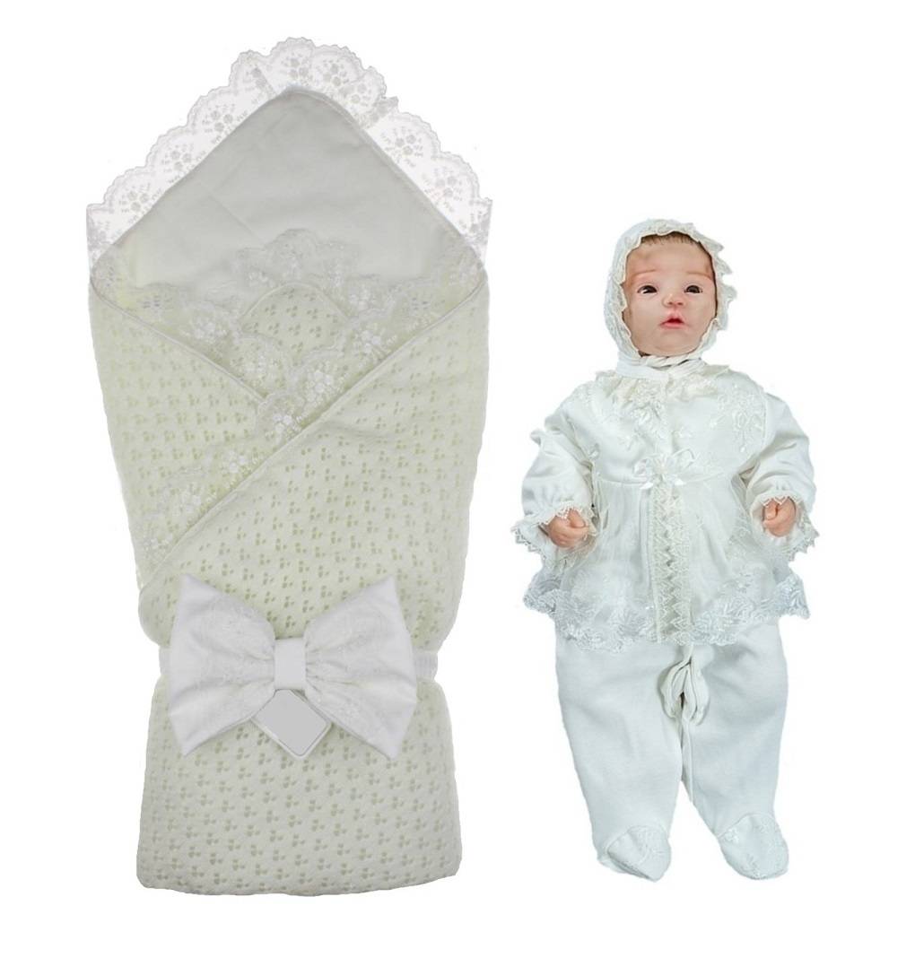 Красивый кружевной конверт для новорожденных или одеялко, но стоит обратить внимание, чтобы оно было тонким и не слишком теплым.