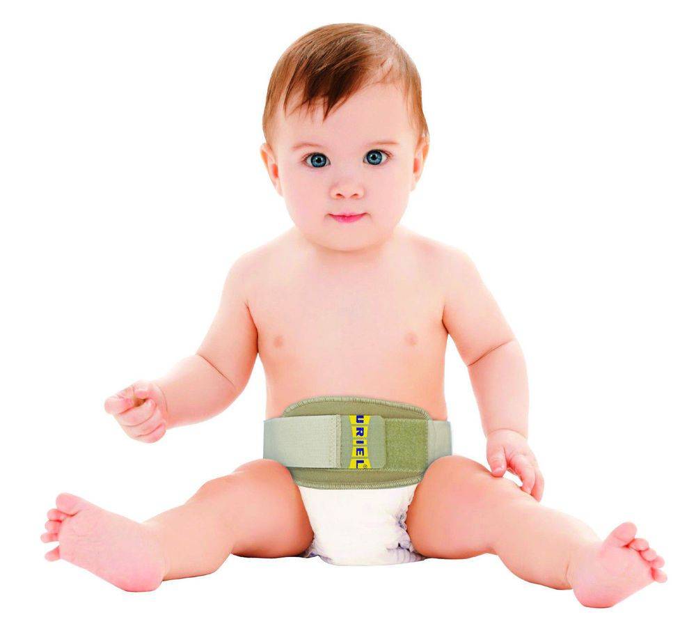 Бандаж – это специально разработанное для исправления пупочной грыжи устройство. Оно представляет собой эластичный пояс, сделанный из дышащего материала и имеющий уплотненный ограничитель, который накладывается непосредственно на проблемный участок. Бандаж не позволяет выпячиванию еще больше увеличиться при напряжении животика малыша (например, когда он плачет, пукает или старательно тужится при запорах).